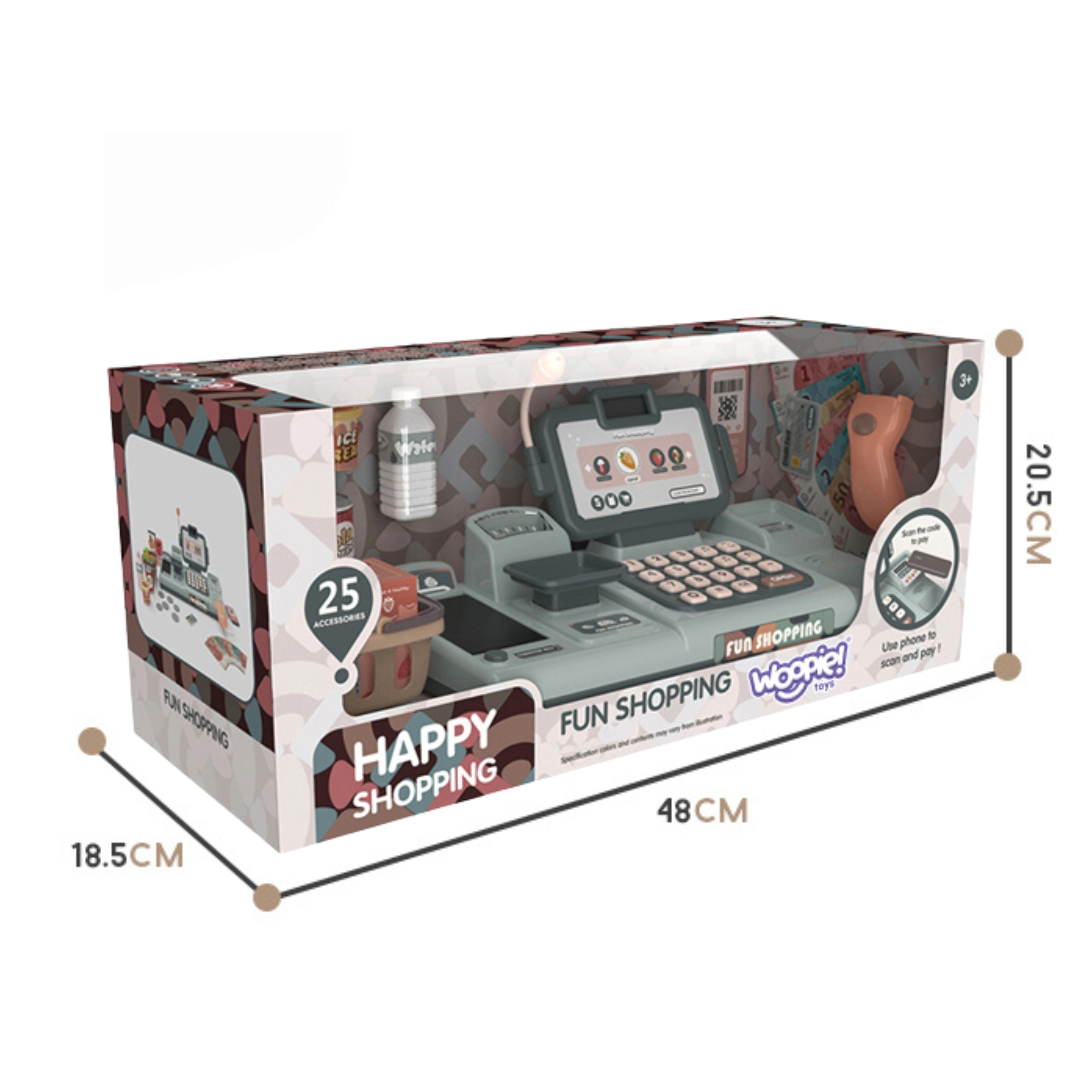 Bērnu kase Woopie ir neaizstājama ikvienam mazajam tirgotājam. Tā ir aprīkota ar kalkulatoru ar LCD displeju, kurā redzami cipari, kā arī ar skaņas skeneri, kas nodrošina reālistisku iepirkšanās pieredzi.