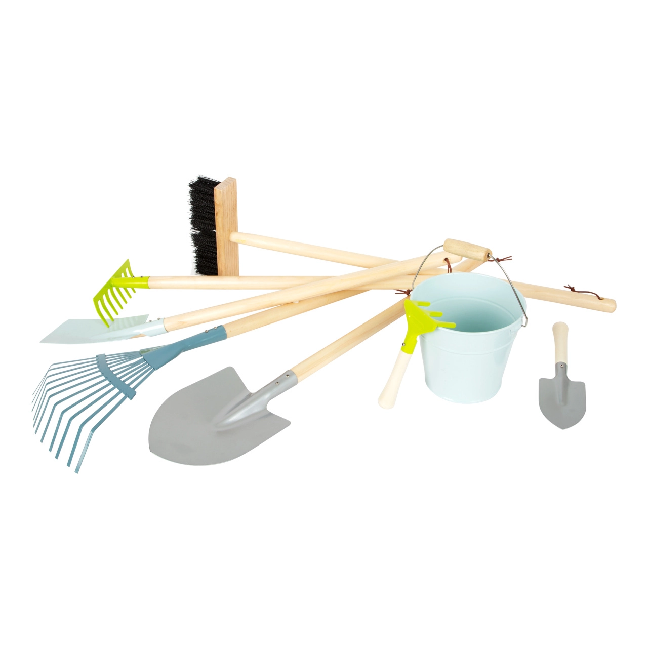Šis lielais Small Foot bērnu dārza darbarīku komplekts veicina kustības brīvā dabā un attīsta veiklību, kā arī saikni ar dabu. Iepakojumā atradīsiet visu nepieciešamo mazajiem palīgiem: lāpstu, lielo lāpstu, grābekli, slotu un mazus dārzkopības instrumentus. Katram gabalam ir koka kāts un metāla darba daļa ilgai kalpošanai.