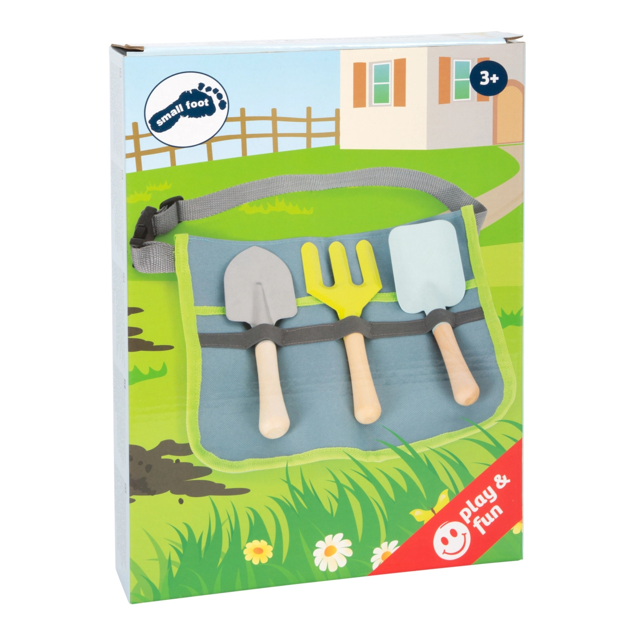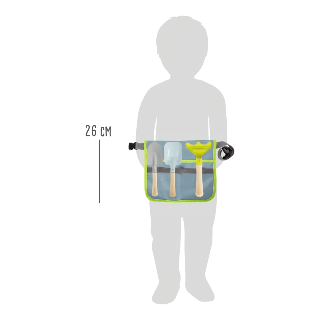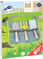 Šis gudrais komplekts apvieno ērtu jostu ar praktiskiem instrumentiem, lai bērni varētu viegli stādīt, irdināt un pārnēsāt augsni. Metāla instrumenti ar gludām malām un koka rokturi ir pielāgoti mazām rokām un iztur arī bērnu aizrautīgo darba tempu. Josta ar regulējamu siksnu tur instrumentus pa rokai un nodrošina brīvas, drošas kustības.