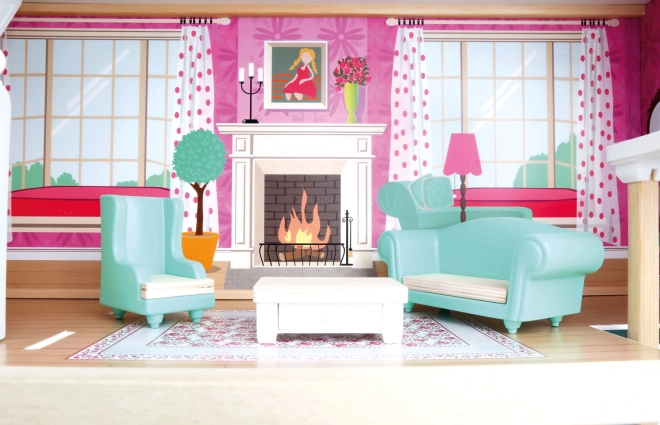 Šis elegantais trīsstāvu leļļu namiņš piedāvā pilnībā aprīkotas telpas – virtuvi, viesistabu, vannas istabu un guļamistabu. Lifts, iekšējās kāpnes un balkons piešķir spēlei reālistisku dimensiju. Kvalitatīvs koka izpildījums ir izturīgs un drošs, ideāli piemērots ikdienas rotaļām ar brāļiem, māsām un draugiem.