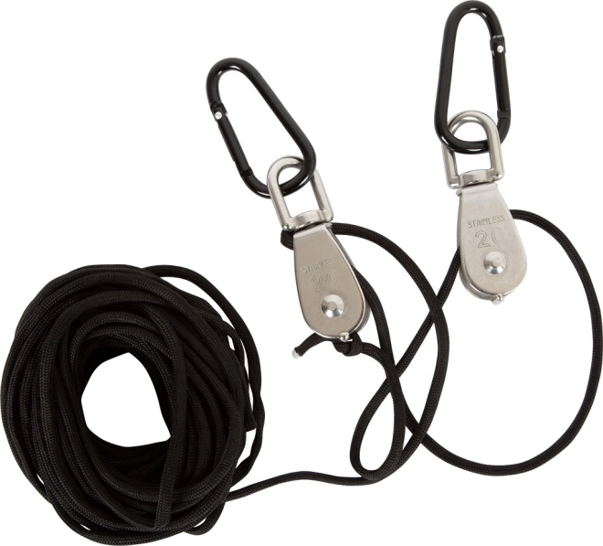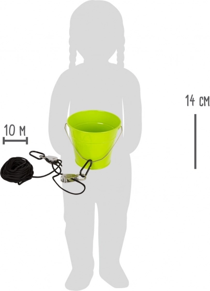 Šis robustais komplekts apvieno izturīgu metāla spaini, stipru 10 m virvi un divus skriemeļus ar karabīnēm ērtai iekarināšanai. Bērni rotaļīgā veidā apgūst mehāniskās priekšrocības darbību un ar minimālu piepūli paceļ nelielus priekšmetus augstumā.