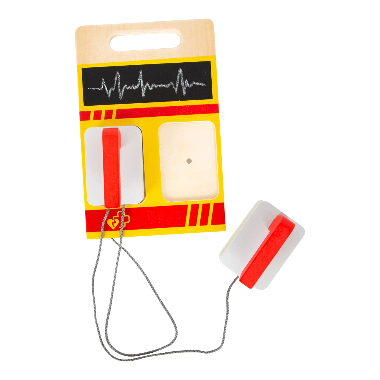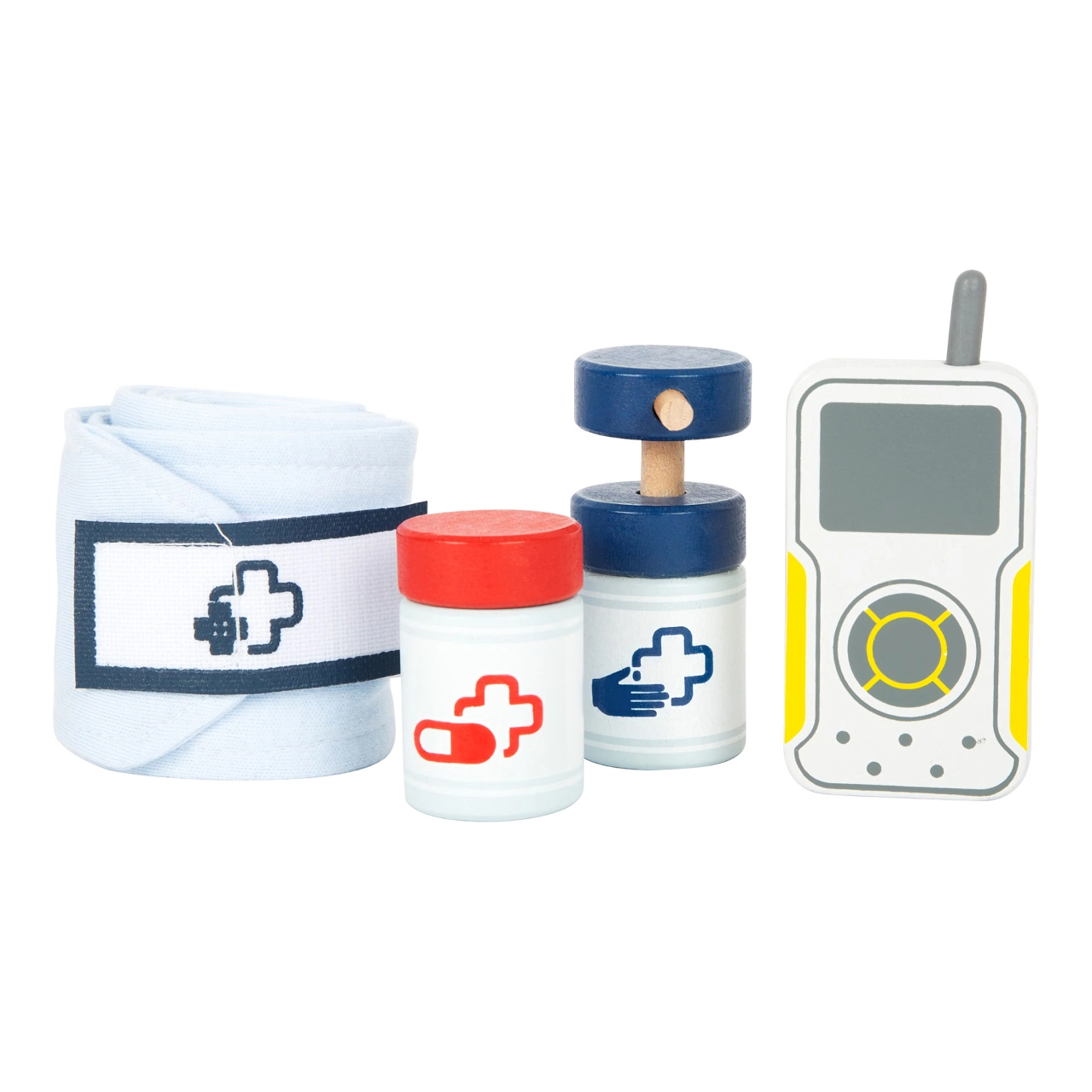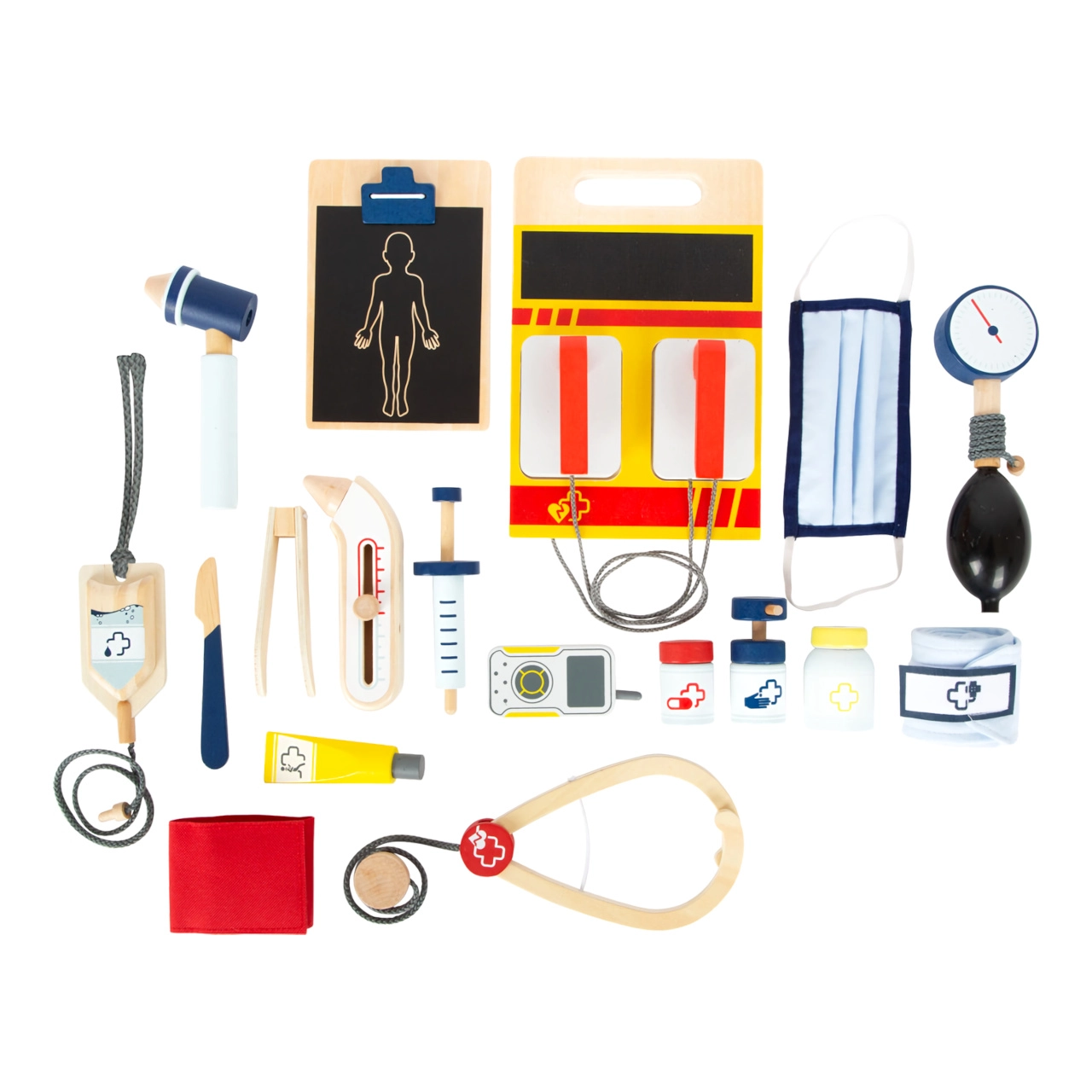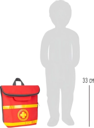 Šī glābēju mugursoma ir ideāli piemērota bērnu ārstu rotaļām. Iekšpusē atradīsiet koka instrumentus, piemēram, stetoskopu, termometru, otoskopu ar palielināmo stiklu un pat defibrilatoru. Bērni var apgūt medicīnas aprīkojuma atpazīšanu un simulēt glābšanas procedūras.