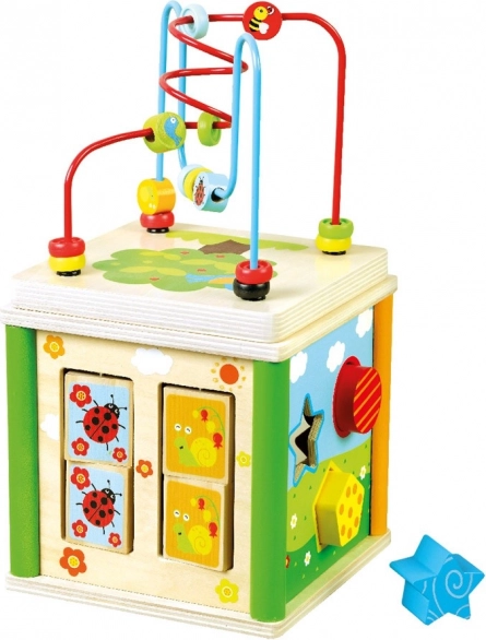 Pateicoties dažādām aktivitātēm, bērni rotaļīgā veidā pilnveido loģisko domāšanu, koncentrēšanos un radošumu. Kuba izgatavota no izturīga koka un papildināta ar metāla elementiem, tāpēc tā izturēs arī ikdienas bērnu izpēti.