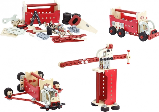 Meklējat rotaļlietu, kas attīstīs jūsu bērnu motoriskās prasmes un radošo domāšanu? Divpusējs rīku koferis Vilac ir īstā izvēle! Šis komplekts satur līdz pat 96 detaļām, kas ļauj veidot modulāras konstrukcijas, piemēram, kravas automašīnu, celtni vai pat robotu. Vilac Ateljē dizains garantē kvalitatīvu izpildījumu un pievilcīgu retro izskatu. Bērni varēs iejusties mazā meistara lomā un iedvesmot savu rotaļlietu pasauli.