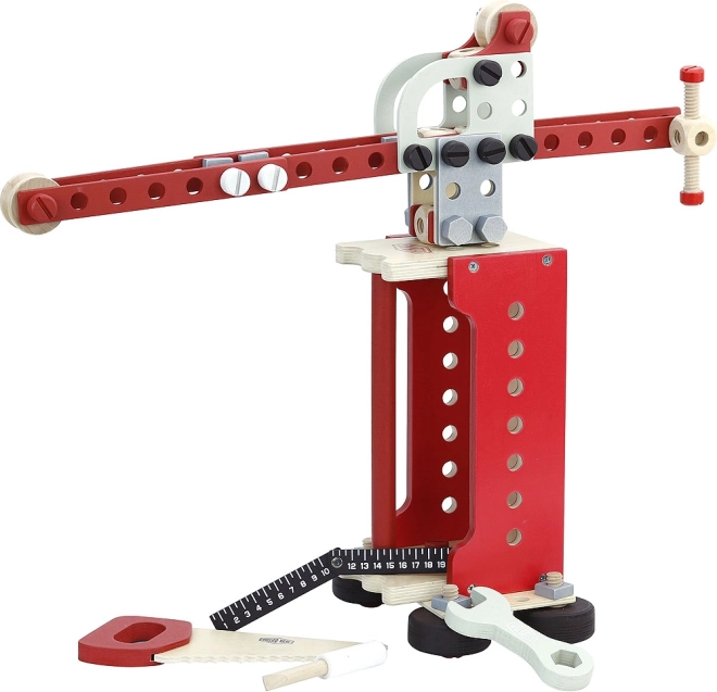 Komplekts ir izgatavots galvenokārt no kvalitatīva koka un satur izturīgas sastāvdaļas, kas nodrošina rotaļlietu ilgmūžību.