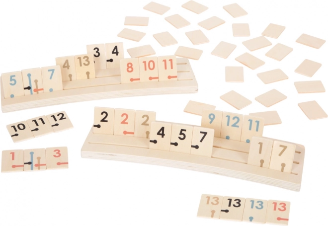 Rummy Gold Edition no SMALL FOOT ir laikmetīga stratēģijas spēle premium izpildījumā. Tā izceļas ar tendīgām pasteļkrāsām, izsmalcinātām zelta detaļām un redzamu koka tekstūru, tāpēc lieliski iederas modernā interjerā un kalpo arī kā stilīgs dekors.