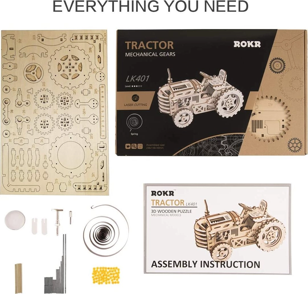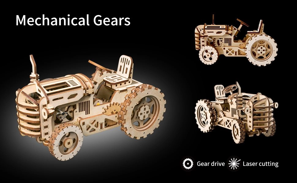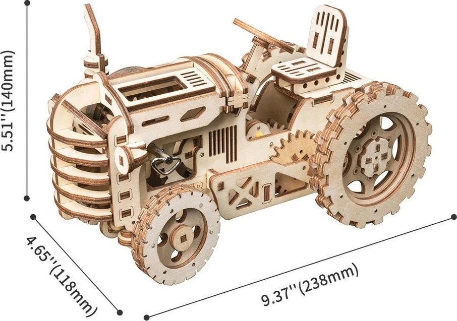 ROBOTIME Rokr piedāvā aizraujošu 3D koka traktora puzli ar reālistiskām detaļām. Šis mehāniskais modelis neprasa baterijas – vienkārši uzvelciet motoru ar atslēgu un vērojiet, kā tas atdzīvojas. Ar stūres griešanu varat mainīt priekšējo riteņu kustības virzienu, kas padara modeli interaktīvāku.