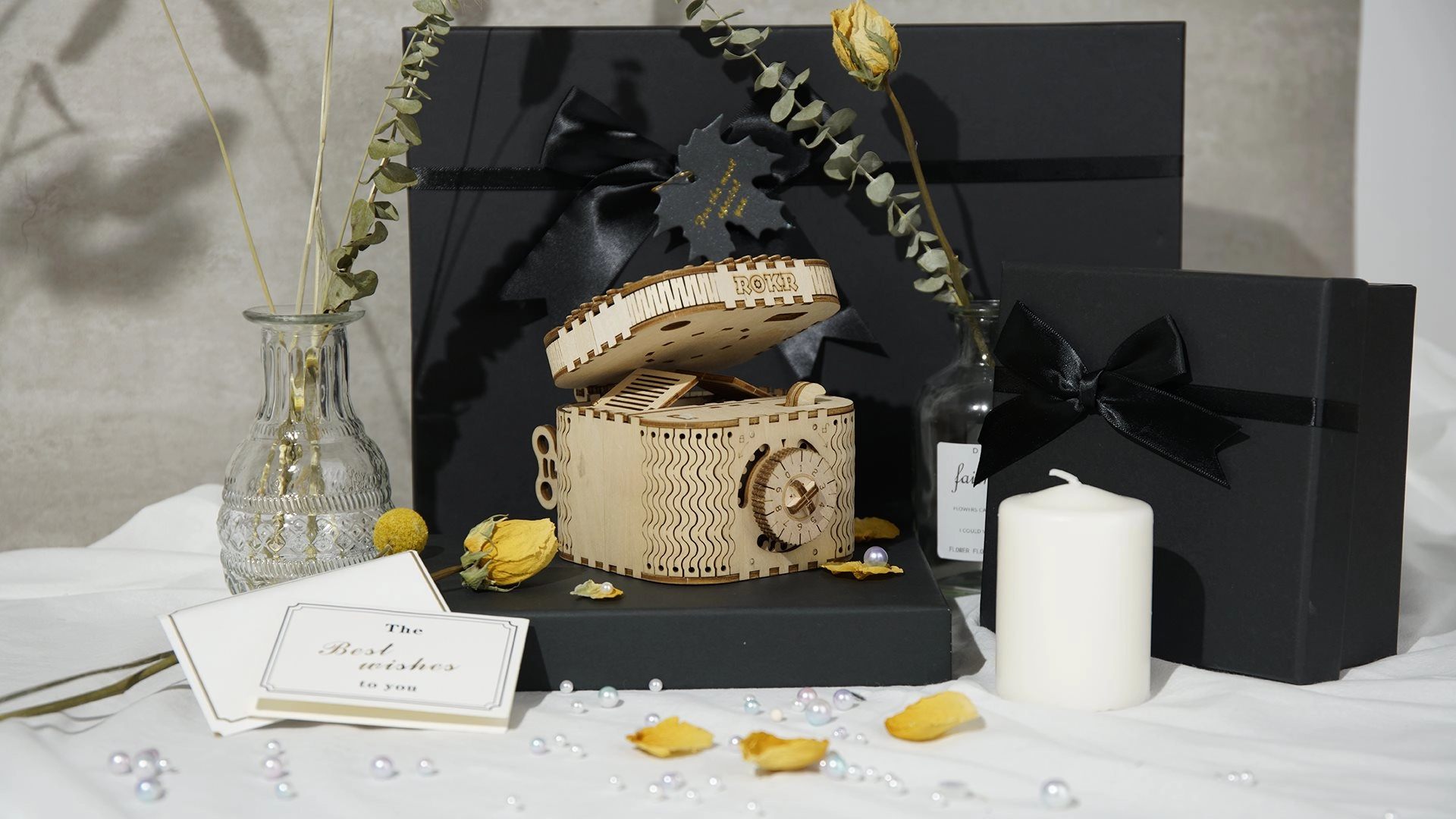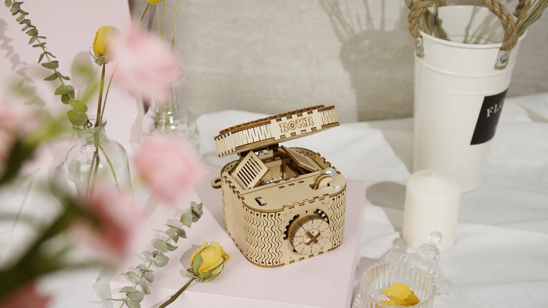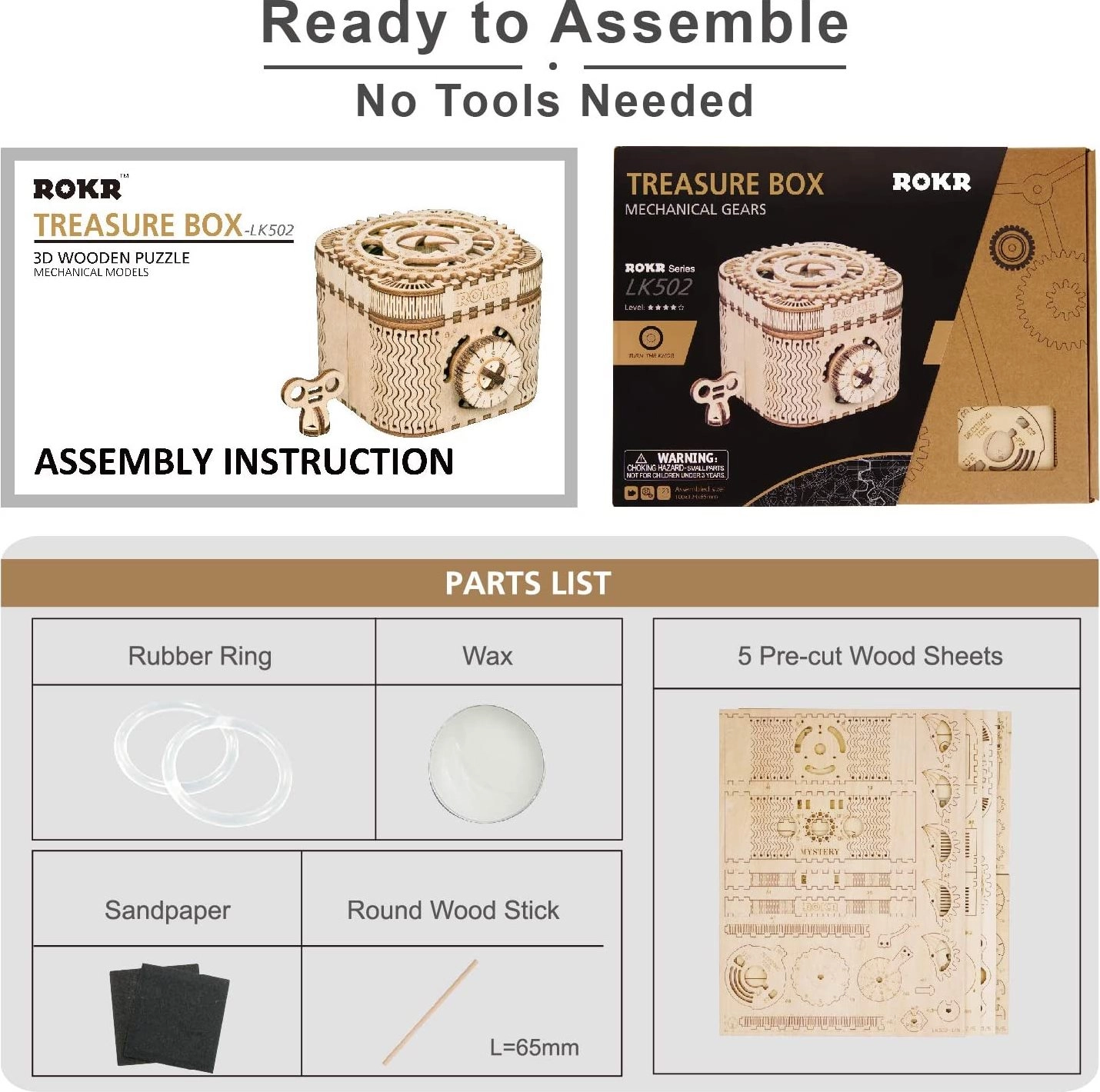 Koka mehānisko pužļu rotaslietu kārbiņa no saplākšņa ir unikāla dāvana DIY entuziastiem un grezna interjera dekorācija. Salikšana ir vidējas grūtības un sniedz lielisku izaicinājumu ar 123 precīzi izgrieztām detaļām. Kārbiņai ir divi nodalījumi, tostarp galvenais, kas ir nodrošināts ar trīsciparu kodu, ko lietotājs var iestatīt no daudzām kombinācijām.