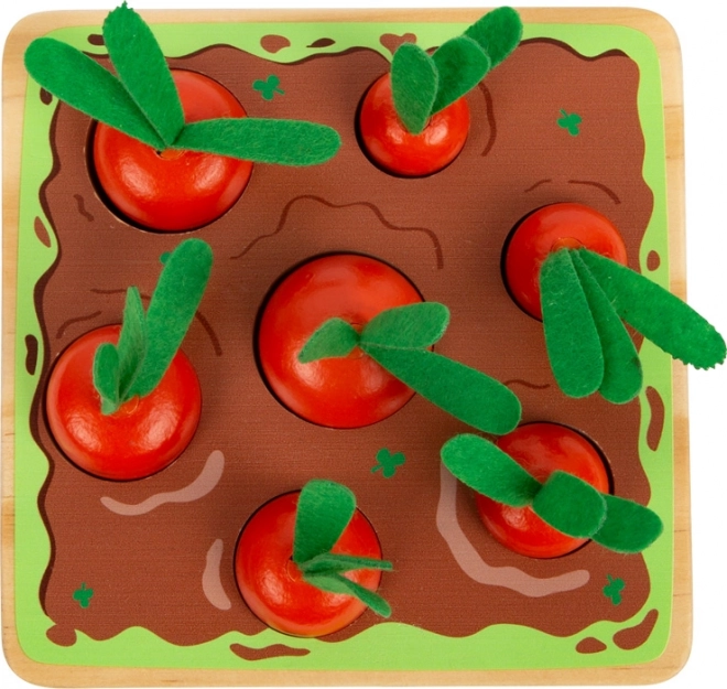 Montessori metodes iedvesmota pieeja bērniem sniedz iespēju mācīties aizraujošā veidā. Ielikšanas un šķirošanas spēle ietver septiņus dažāda izmēra burkānus, kurus bērni, salīdzinot izmērus, ievieto pareizajos atvērumos uz dēlīša. Šis spēļu komplekts palīdz attīstīt sīko motoriku, izpratni par izmēriem un vērīgumu. Turklāt, pateicoties reālistiskajam dizainam ar zaļajām filca daļām, tas veicina lomu spēles un jaunāko dārzkopju iztēles attīstību.
