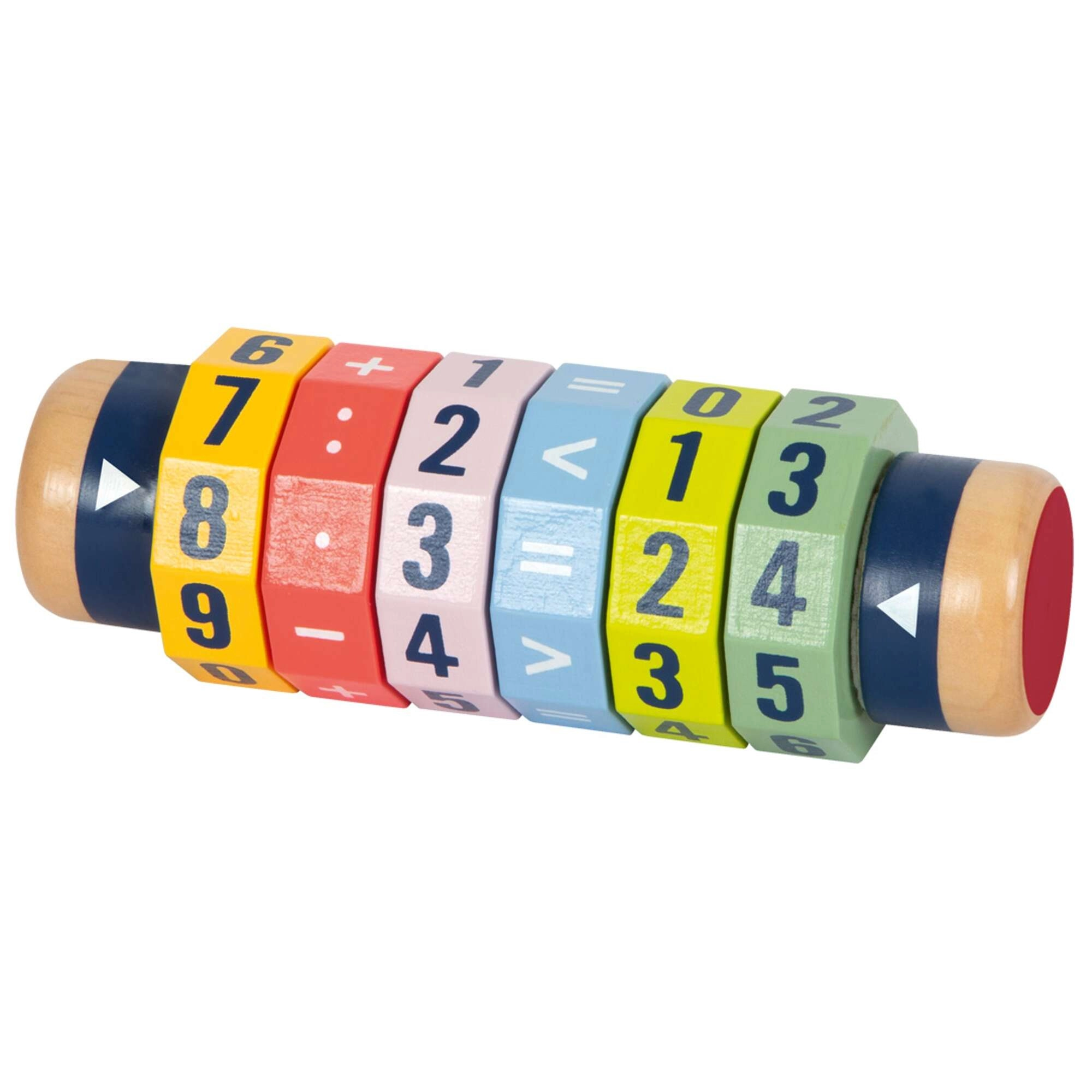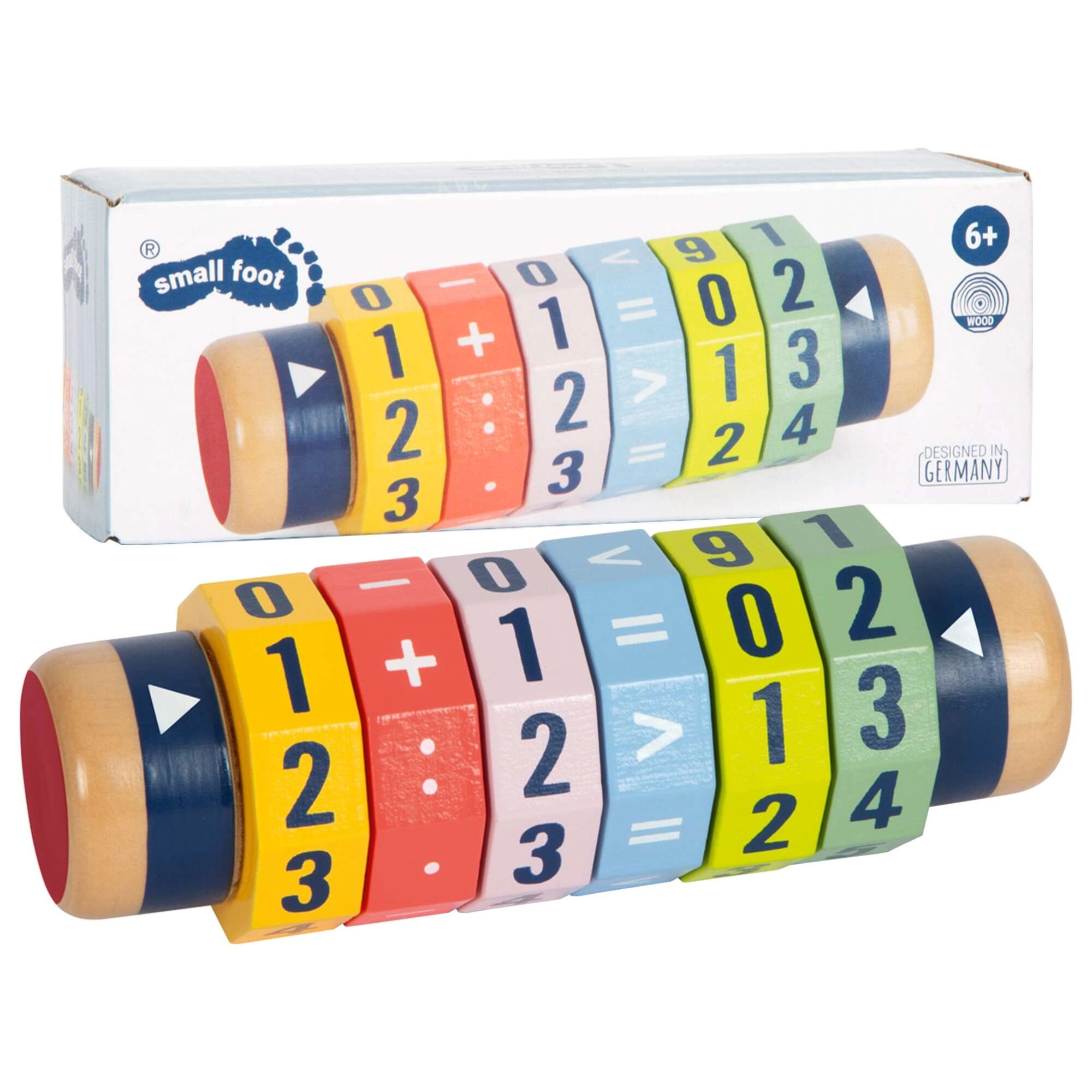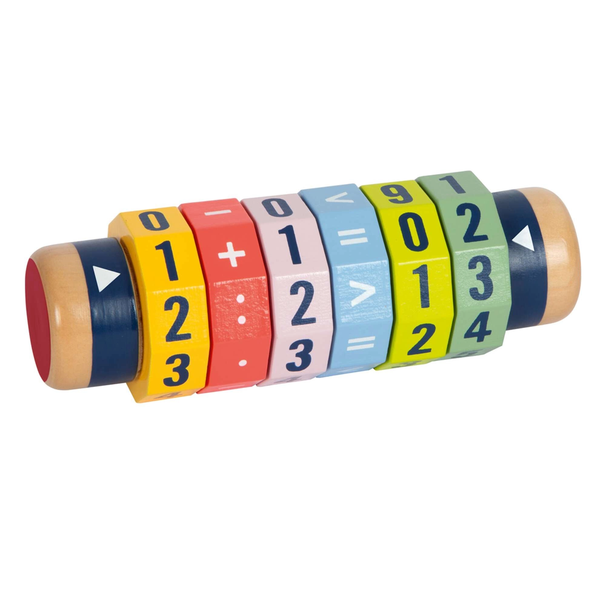 Krāsaina koka mācību palīgierīce ar rotējošiem gredzeniem palīdz bērniem trenēt skaitīšanu, pamata aritmētiku un loģisko domāšanu. Seši rotējoši segmenti ļauj veidot pašiem savus piemērus saskaitīšanai, atņemšanai, reizināšanai un dalīšanai. Kompaktie izmēri, izturīga koka konstrukcija un viegli salasāmi cipari padara veltni par lielisku izglītojošu rotaļlietu gan mājās, gan ceļā.