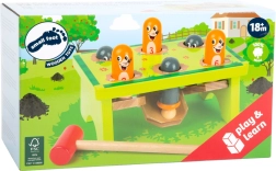 Izklaidējoša koka sitamā rotaļlieta ar Kurmīšu motīvu sniedz bērniem spēles prieku un vienlaikus attīsta prasmes. Ar katru āmuriņa sitienu citā caurumā parādās nākamais kurmis, kas veicina roku–acu koordināciju, sīko motoriku un ciparu apgūšanu pateicoties numurētām alām. Rotaļlieta izgatavota no 100% FSC koka ar uzsvaru uz drošību un kvalitatīvu izpildījumu.