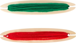Četras koka spolītes ar krāsainu dziju un pamatdiegi ļauj sākt radīt bez papildu pirkumiem – atliek tikai atvērt un aust.