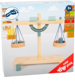 Apkalpojot “klientus”, bērni mācās saziņu, sadarbību un godīgus darījumus. Pateicoties kvalitatīvam kokam ar dabisku izskatu un patīkamām pelēkzilām nokrāsām, svari ir ne tikai izturīgi, bet arī estētiski pievilcīgi un droši bērnu rokām.