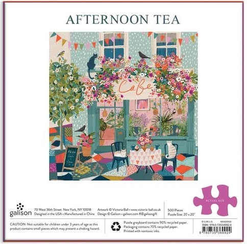 Atklājiet GALISON burvīgo pasauli ar motīvu “Pēcpusdienas tēja kafejnīcā”. Vislabāk pārdotās mākslinieces Viktorijas Bolsas ilustrācija atspoguļo mājīgu pilsētas kafejnīcas noskaņu, rotātu ar ziedošiem augiem, kur rotaļājas mīlīgi kaķi un lido putni. Puzle ievietota izturīgā kastē ar matētu virsmu, lieliski piemērota arī dāvināšanai.