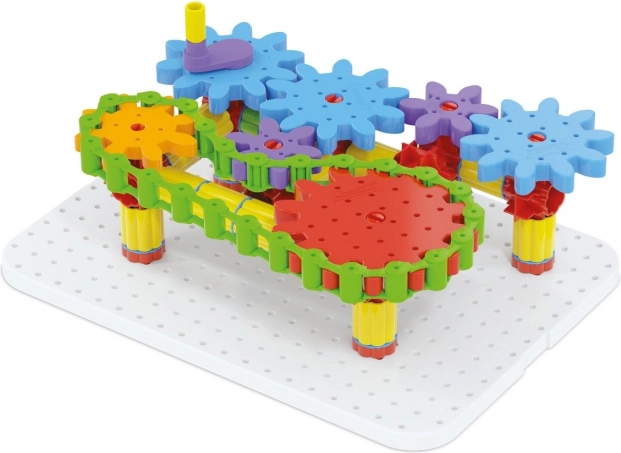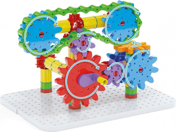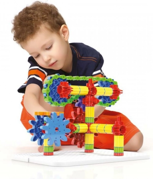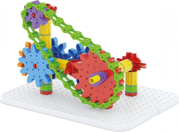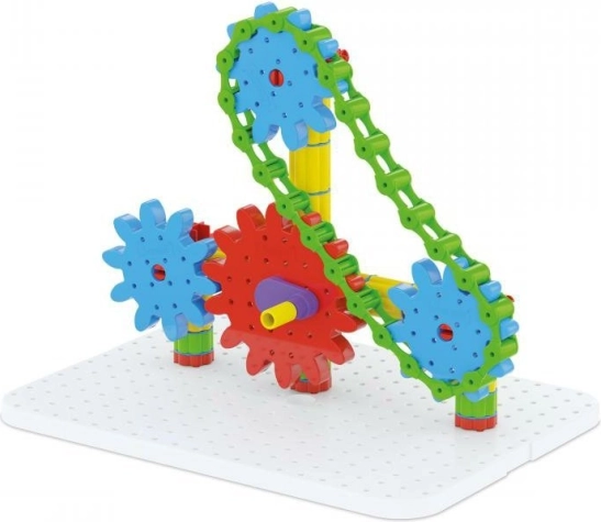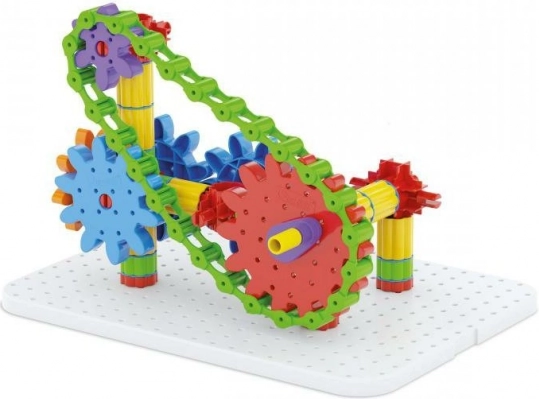 Komplekts ir izgatavots no izturīgas plastmasas un paredzēts bērniem no 5 gadu vecuma. Tas ietver baltu pamatni, dažāda izmēra zobratus, ķēdi un daudz ko citu, kas bērniem ļauj atklāt mehānisko kustību jauno pasauli.