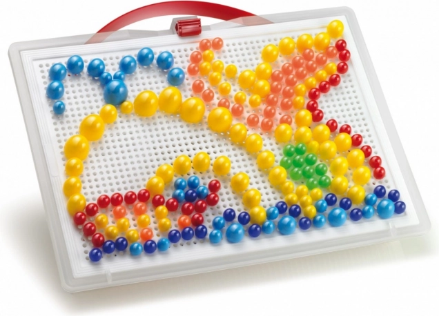 Veidojiet brīnišķīgas mozaīkas un rakstus ar krāsainām tapām, kuras izvietotas uz stingras baltas plāksnes.