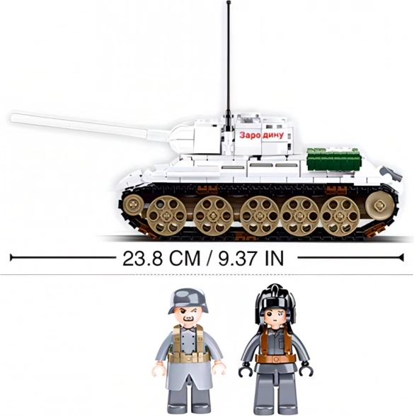 Uzceliet ikonisko T‑34/85 tanku no Sluban sērijas Budapeštas kauja. Konstruktors piedāvā 518 detaļas, 2 figūriņas un vidēju grūtības pakāpi, tāpēc tas patiks gan aizrautīgiem būvētājiem, gan kolekcionāriem. Detaļas no izturīga ABS plastmasas ir saderīgas ar LEGO, COBI un MEGA BLOKS, un inovatīvām figūriņām ir rotējošas un šūpojošas daļas vēl realistiskākai spēlei.