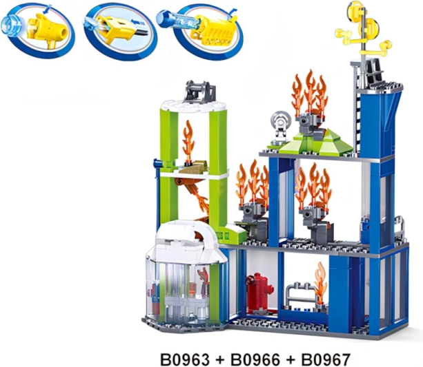Dodieties uz izsaukumu ar radošo Sluban komplektu, kas piedāvā lielu ugunsdzēsēju auto ar ūdens lielgabalu, mobilu robotu un 3 figūriņas aizraujošām glābšanas misijām. Komplektā ir 585 detaļas, tas ir savietojams ar LEGO, Cobi un Mega Bloks, un pateicoties kvalitatīvam ABS plastmasas materiālam iztur stundām ilgu spēli.