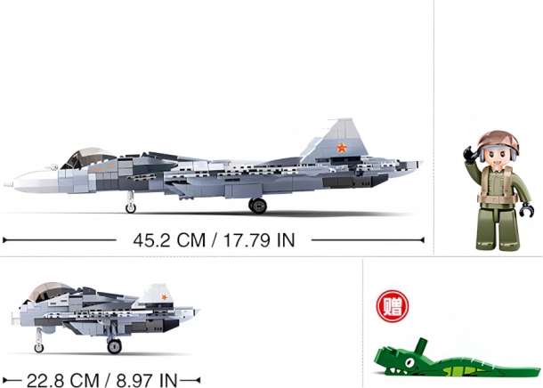 Uzceliet modernu Krievijas reaktīvo iznīcinātāju SU-57 2 vienā versijā ar Sluban Model Bricks konstruktoru. Šis komplekts piedāvā 893 detaļas, 1 figūriņu un vidēju grūtības pakāpi lieliskai būvēšanas pieredzei. Detaļas no izturīga ABS plastmasas ir saderīgas ar LEGO, Cobi un Mega Bloks, bet inovatīvajām figūriņām ir griežamas un šūpojošas daļas labākai spēlei.