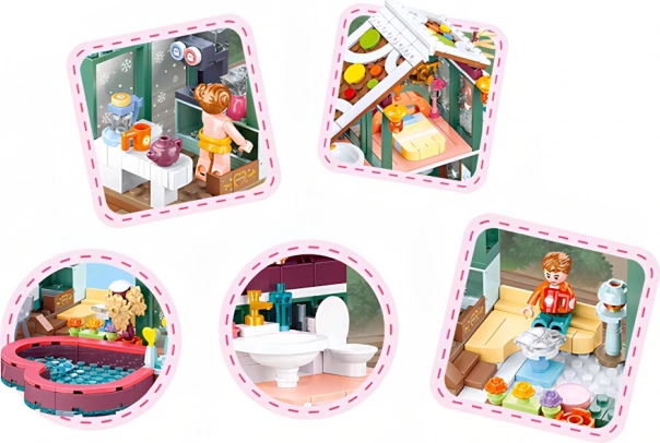 Uzbūvējiet mājīgu ziemas mājiņu un izbaudiet bezgalīgus ziemas stāstus. Divstāvu namiņš ar guļamistabu, viesistabas zonu un āra elementiem, piemēram, slidkalniņu un burbuļvannu, rosina bērnu iztēli un kopīgas spēles. Iekļautas 4 detalizētas figūriņas ar grozāmām un šūpojamām daļām vēl reālistiskākām ainām.