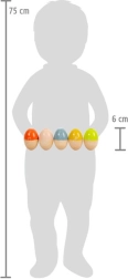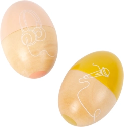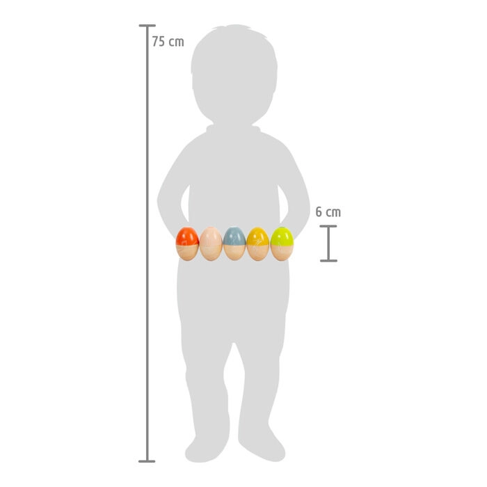 Šīs koka mūzikas olas ir ideālas pirmajai iepazīšanai ar ritma un skaņas pasauli. Pateicoties atšķirīgam pildījumam un konstrukcijai, katra ola rada unikālu čabināšanas raksturu, kas rosina bērnu zinātkāri, koncentrēšanos un dzirdes uztveri. Ergonomiskā forma ir viegli satverama pat pašām mazākajām rociņām.