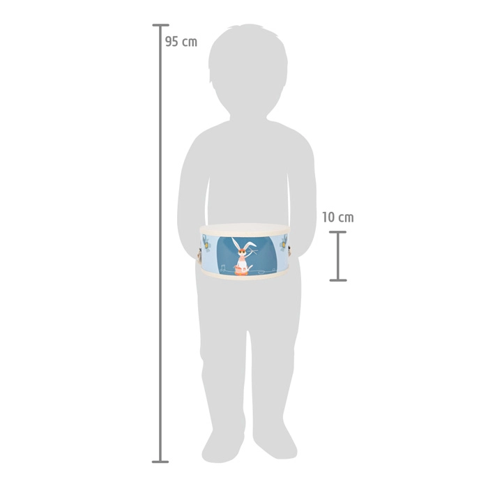 Kokvilnas siksnu ar metāla sprādzi viegli pielāgot bērna augumam – bungas var pavadīt mazos mūziķus ikvienā uzstāšanās reizē.