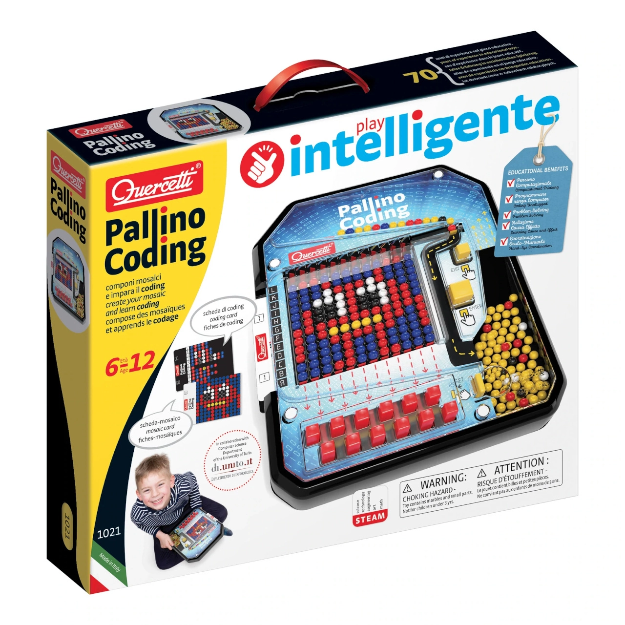 Atklājiet programmēšanas burvību ar Quercetti Pallino programmējamo mozaīku — viedu rotaļlietu, kas rosina bērnu radošumu un loģisko domāšanu. Ar mehāniskas sistēmas palīdzību bērni viegli sapratīs kodēšanas pamatus, aizpildot attēlu kartes vai sekojot instrukcijām.