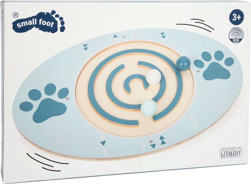 Koka līdzsvara dēlis Small Foot apvieno rotaļas un kustību. Ovālā virsma ar spirālveida trasi un brīvi ripojošām bumbiņām pārbauda jūsu līdzsvaru – noliecot dēli, vadāt bumbiņas cauri labirintam un trenējat acu–roku koordināciju, reakciju un stabilitāti.