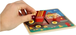 Koka puzle ar ugunsdzēsēju automašīnas motīvu ir ideāla mazajiem bērniem, kuri vēlas apgūt koordināciju un loģisko domāšanu. Šis krāsainais un rotaļīgais produkts veicina smalkās motorikas attīstību.
