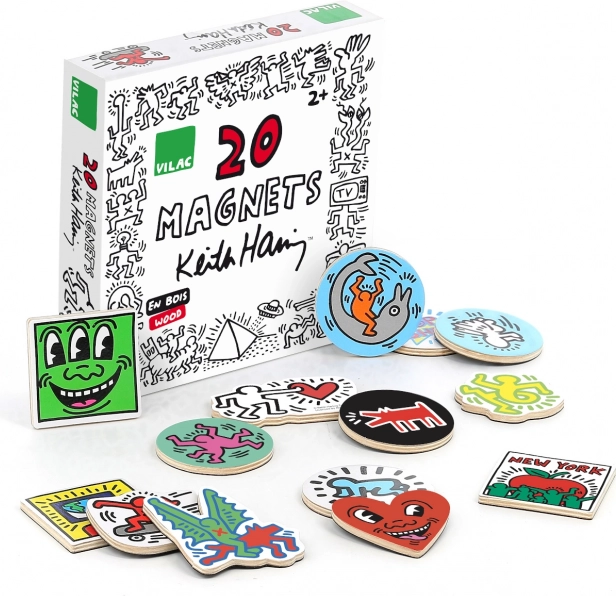 Ienesiet savās mājās popārta rotaļīgo enerģiju! 20 koka magnētiņu komplekts VILAC ar KEITH HARING motīviem piedāvā neatkārtojamu dizainu, košas krāsas un radošuma prieku. Pateicoties stingrajai koka konstrukcijai un spīdīgajai apdrukai, magnētiņi ir ideāli piemēroti ikdienas lietošanai uz ledusskapja, magnētiskās tāfeles vai plauktiem.