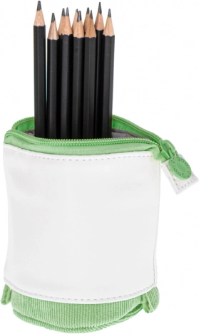 Izturīgs tekstila materiāls nodrošina ilgu kalpošanas laiku, bet rāvējslēdzējs pasargā saturu no izbiršanas. Minimalistisks zaļi‑balts dizains patiks gan bērniem, gan pieaugušajiem un lieliski papildinās modernu skolas vai biroja aprīkojumu.