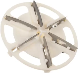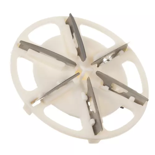 Galvā ir 6 nerūsējošā tērauda naži efektīvai tekstilizstrādājumu apstrādei.