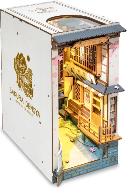 Padariet savu grāmatu plauktu īpašu ar unikālu dekoratīvu balstu mājiņas formā no tematiskās kolekcijas “Sakuras ieliņa”. Diorāma, pilna burvīgu detaļu, kas iedzīvinās katru stāstu, ar LED apgaismojumu un skārienjutīgu slēdzi.