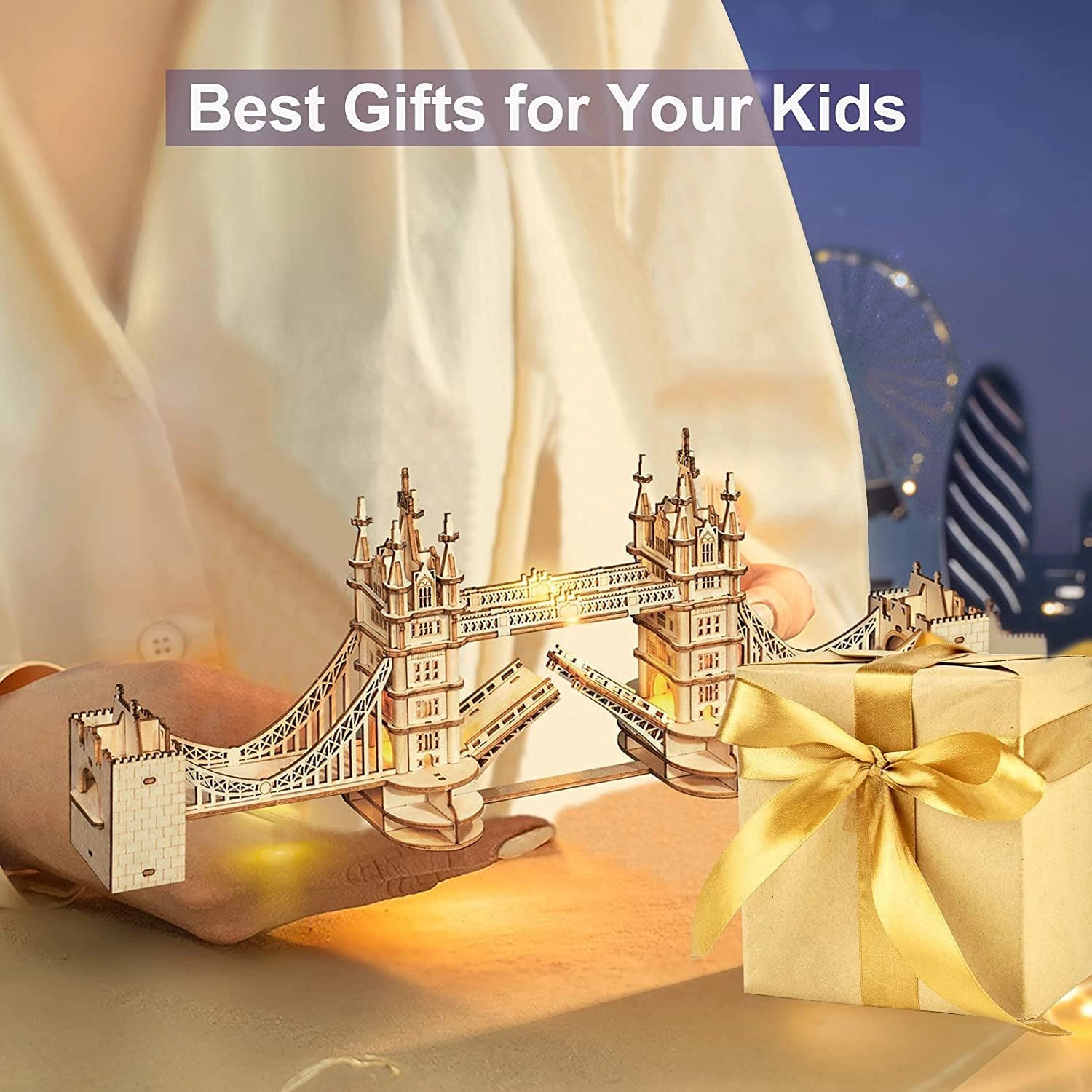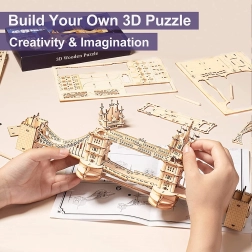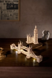 Atklājiet Londonas atmosfēru ar reālistisku Tower Bridge modeli no kvalitatīvas saplākšņa. Detalizētās daļas precīzi savienojas, nodrošinot plūstošu un aizraujošu būvēšanu. Integrētais LED apgaismojums piešķir pabeigtajai būvei mājīgu vakara noskaņu un izceļ pārdomātās arhitektoniskās līnijas.