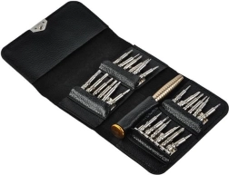 Komplekts lieliski noder telefonu, viedtālruņu vai klēpjdatoru remontam, kā arī darbam juvelierizstrādājumu izgatavošanā, pulksteņmeistarībā vai optikā.