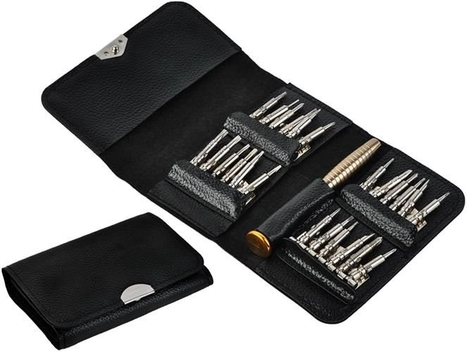 Precīzo skrūvgriežu komplekts 25 vienā ietver kopā 24 maināmos uzgaļus un pamatturētāju. Ideāli piemērots lielākās daļas tirgū pieejamo elektronisko ierīču apkopei un remontam.