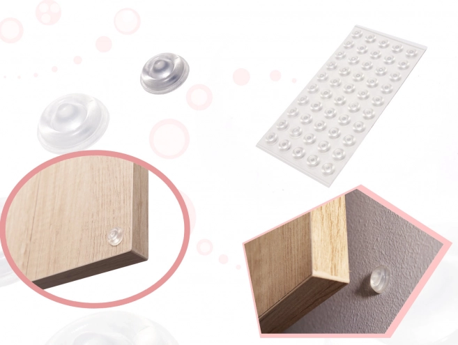 Caurspīdīgie silikona amortizatori saplūst ar virsmu un aizsargā sienas un mēbeles, nebojājot dizainu.
