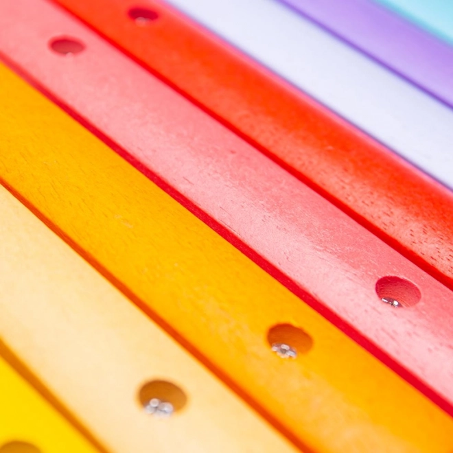 Drošās skrūves nodrošina stingru taustiņu stiprinājumu, kas pasargā bērnus spēlēšanas laikā. Šis ksilofons ir ideāli piemērots koordinācijas un krāsu uztveres attīstīšanai.