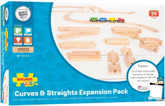 Bigjigs Rail koka sliežu komplekts sniedz bērniem iespēju nebeidzamām rotaļām un radošuma attīstīšanai. Ar 24 detaļām var viegli veidot dažādas trases konfigurācijas un interaktīvus stāstus. Pateicoties kvalitatīviem dabīgiem materiāliem un savietojamībai ar citām zīmēm, šis komplekts ir ideāls kā papildinājums vai esošās trases paplašinājums.