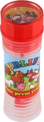 Izklaidējošs burbulītis ar motīvu Mani pirmie dzīvnieciņi iepriecinās ikvienu bērnu. Satur 50 ml burbuļu šķidruma, vāciņā ir integrēta spēle un pūšamais kociņš ir vāciņa sastāvdaļa. Ideāli piemērots svinībām, āra rotaļām un kā neliela balva. Piemērots no 6 gadu vecuma.