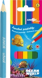 Zīmuļi ir iepakoti krāsainā papīra kastītē ar zemūdens pasaules motīvu, kas iedvesmo bērnus turpināt radošo darbošanos. Kvalitatīvi materiāli un precīzs izpildījums nodrošina ilgu kalpošanas laiku un izturību pret lūšanu, tāpēc bērni var baudīt radošo procesu bez raizēm. Turklāt kompaktā iepakojumā pa 6 gabaliem ir ideāla izvēle lietošanai mājās, skolā vai ceļā.