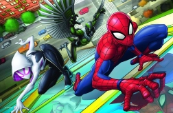 Spilgti un dinamiski Zirnekļcilvēka un viņa draugu attēli ienes spēlē enerģiju un aizrautību.