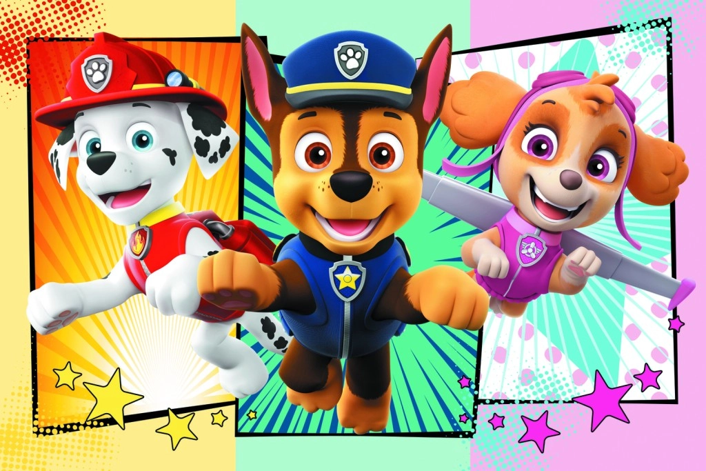 Puzlē ir attēlotas iemīļotās Paw Patrol varoņu figūras, kas nodrošina daudz jautrības bērniem.