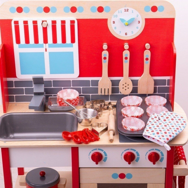 Šis visaptverošais cepšanas komplekts ietver visu aprīkojumu, kas nepieciešams katram mazajam pavāram pirmajiem cepšanas soļiem. Iekļauts cepamais plāts, cimdiņš, klaipiņa forma, putojamā slotiņa, koka rullītis, bļoda, mērkarotes komplekts un seši cepumu formiņi.