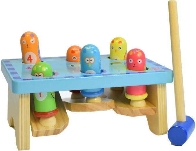 Šī koka dauzāmā rotaļlieta ar jautriem putniņu motīviem bērniem sniedz atklāšanas prieku par cēloņu un seku saistību – kad vienu tapu iedauza, cita paceļas augšā. Stabilā konstrukcija, gludas malas un piesātinātās krāsas padara solu par pievilcīgu un drošu palīgu ikdienas rotaļām.