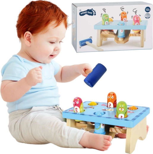 Aizraujošs koka dauzāmā sola komplekts no Small Foot ar putniņu motīvu attīsta bērnu motoriku un koncentrēšanos. Komplektā ir stabils gaiši zilas krāsas sols, krāsaini tapa kociņi un koka āmuriņš. Rotaļlieta veicina acu–roku koordināciju, sitiena precizitāti un krāsu un skaitļu apguvi, tā ir izgatavota no kvalitatīvas koksnes un piemērota bērniem no 18 mēnešu vecuma.