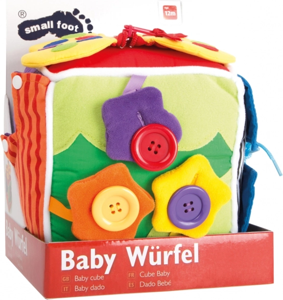 Plīša aktivitāšu kubs no Small Foot ir ideāla rotaļlieta bērnu smalkās motorikas attīstībai. Tas ietver dažāda veida aizdares, piemēram, pogas, rāvējslēdzējus un aukliņas, kas veicina taustes izpēti.