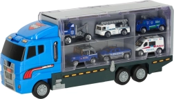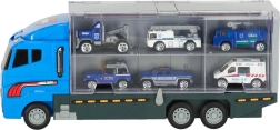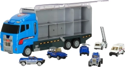Lielais zilais kravas auto apvieno glabāšanas funkciju ar spēles iespējām. Tas ļauj pārvadāt līdz 14 mazām metāla mašīnītēm, kas ir iekļautas komplektā. Mašīnītes reālistiski atdarina īstus policijas un neatliekamās palīdzības transportlīdzekļus. Kravas auto abās pusēs ir caurspīdamas durtiņas ar drošības slēdžiem, kas nodrošina, ka mašīnītes neizkrīt braukšanas laikā. Iekļauts arī mašīnīšu palaišanas mehānisms priekšpusē, kas piešķir spēlei papildu dimensiju.