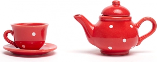 Sarīkojiet perfektu bērnu tējas ballīti ar šo valdzinošo komplektu sarkanā krāsā ar baltiem punktiem. Komplektā ir viss, kas mazajiem saimniekiem nepieciešams – tējkanna, 4 tasītes ar apakštasītēm, cukurtrauks un pienkrūze. Pēc spēlēšanās visu var viegli sakārtot izturīgā koferītī, tāpēc komplekts ir ideāli piemērots arī ceļošanai. Izgatavots no kvalitatīviem materiāliem un atbilst Eiropas drošības standartiem.