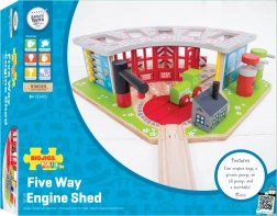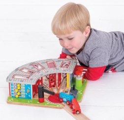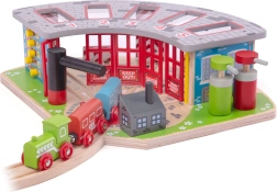 Komplektā ir ne tikai depo, bet arī funkcionējošs pagrieziena galds un divas uzpildes stacijas realistiskai spēlei.